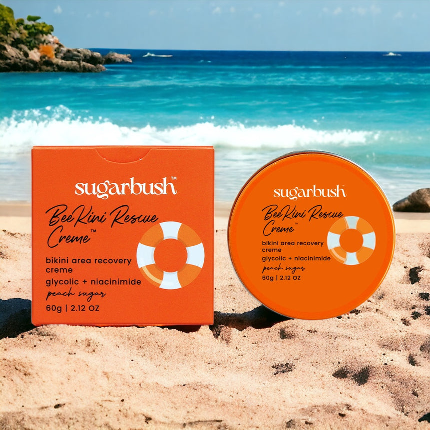 Our Beekini Rescue Crème is the perfect companion to the Balancing Concentrate. The hydrating crème formula treats  and prevents ingrown hair, while hydrating the skin on and around the bikini area. Niacinamide and glycolic acid gently exfoliate and even discoloration, while tee tree oil's antiseptic properties targets blemish causing bacteria. This is the ideal, gentle but effective treatment of intimate skin challenged with ingrown hair blemishes. 2.12oz