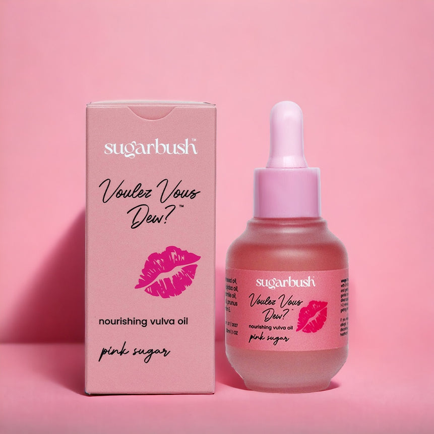 Our Voulez Vous Dew silk renewal oil soothes the bikini area and vulva, and pairs perfectly with our vulva balm or crème. Nourishing grape seed oil, sweet almond oil and Vitamin E pamper your delicate vulva skin, and the pink sugar (berries!) scent will leave you smelling better than ever. We think you’ll agree that it’s a hydration essential. 2oz